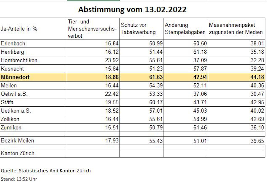 Abstimmungsergebnisse vom 13.02.2022 – Bezirk Meilen