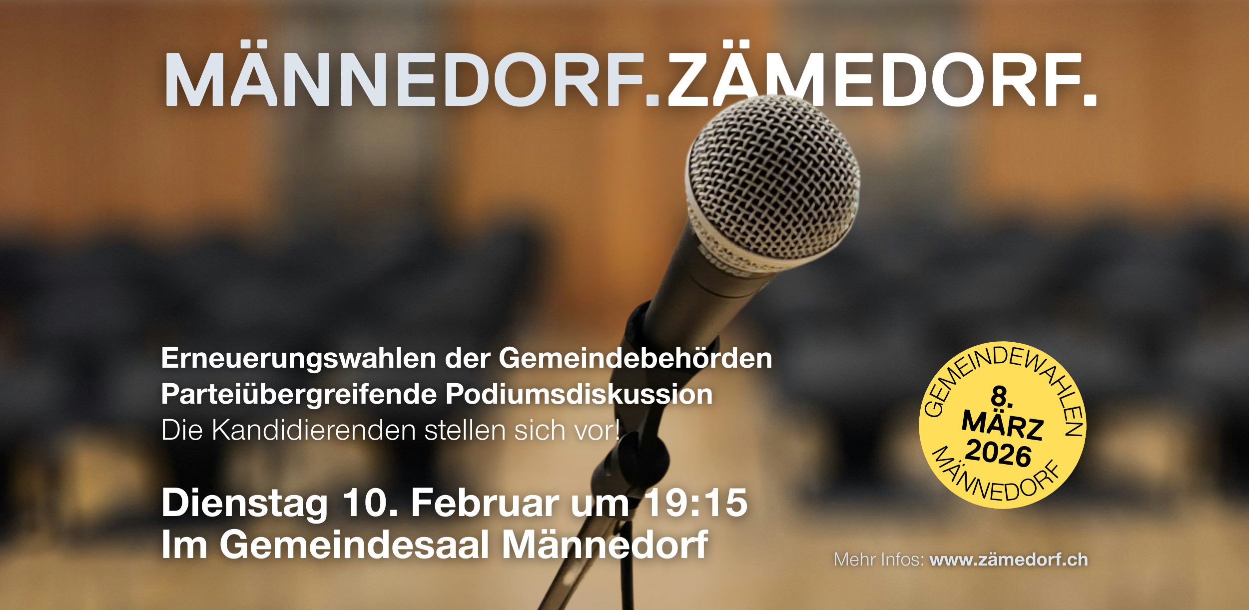 Am 10. Februar präsentieren sich alle Kandidierenden für Gemeinderat und Schulpflege im Gemeindesaal Männedorf an einem öffentlichen Podium.